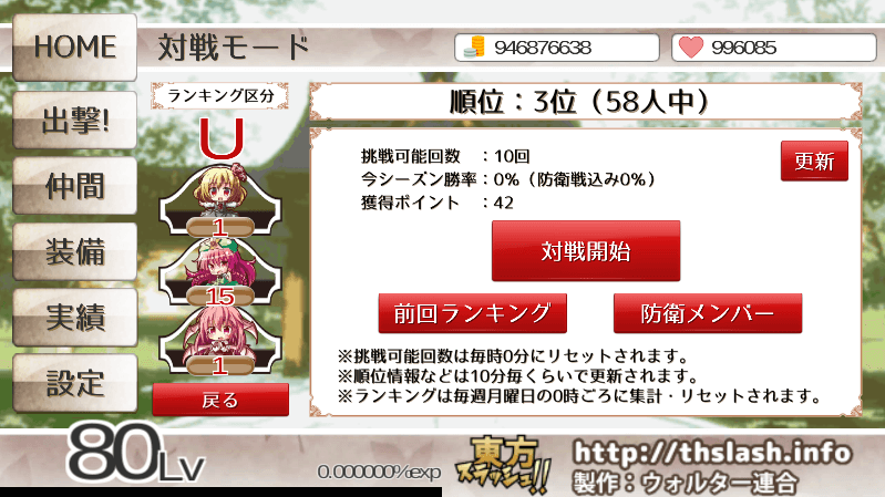 ランキング100位以下だった場合は、防衛メンバーが削除され、次回アクセス時に再登録が行われる。