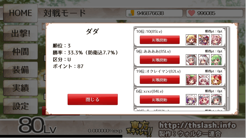対戦モードはBETAテスト中です。テスト中は不具合などにより予告なくランキングがリセットされたりサーバーデータが飛んだりする可能性があります。